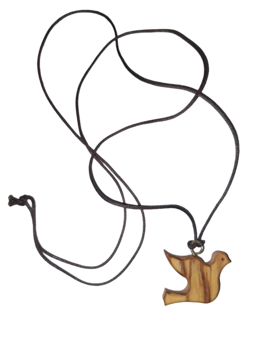 Medal Pendant olive wood dove. Complete with SVP blue gift bag.