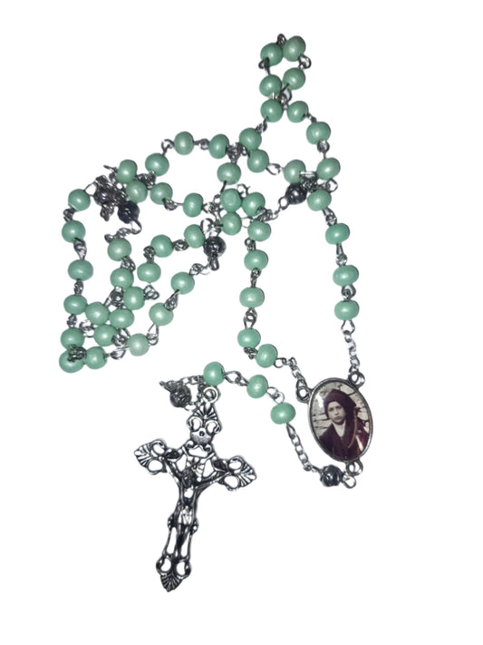 Rosary of Saints Francisco and Jacinta, 6 mm green wood beads.
