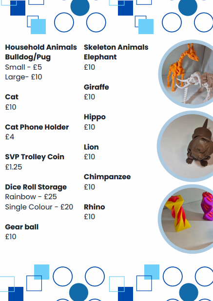 Southend-on-Sea currently offers 3 services, 3D Printed Items, 3D Printed Items (Religious) and Embroidery. Please browse through the catalogues below and be sure to order using the southendsupport@svp.org.uk email not Shopify.